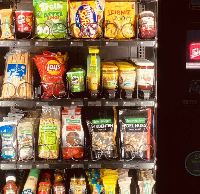 In meinen Automaten findest du eine Mischung, die zum Alltag passt: regionale Produkte, bekannte Marken – und auch mal was Süßes. Nicht alles ist bio oder „supergesund“, aber alles ist ehrlich ausgewählt.