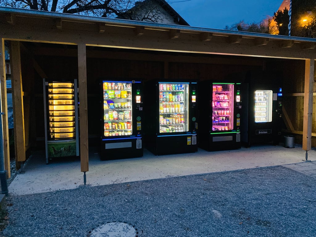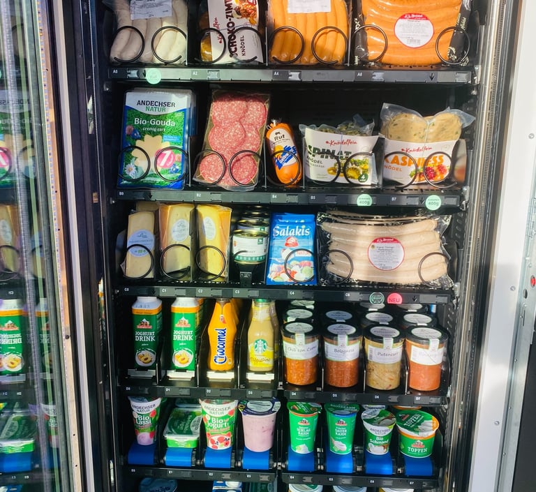 Unsere Lebensmittelautomaten sind kontaktlos bedienbar und bieten eine große Auswahl an regionalen Spezialitäten und bekannten Markenprodukten – u. a. von Andechser Natur, der Molkerei Berchtesgadener Land, der Naturkäserei TegernseerLand, Perger Säften, Augustiner Hell Alkoholfrei, Lammsbräu, den Herrmannsdorfer Landwerkstätten, Rapunzel und Seitenbacher, sowie frischen Fleisch- und Wurstwaren der Metzgerei Ruf.