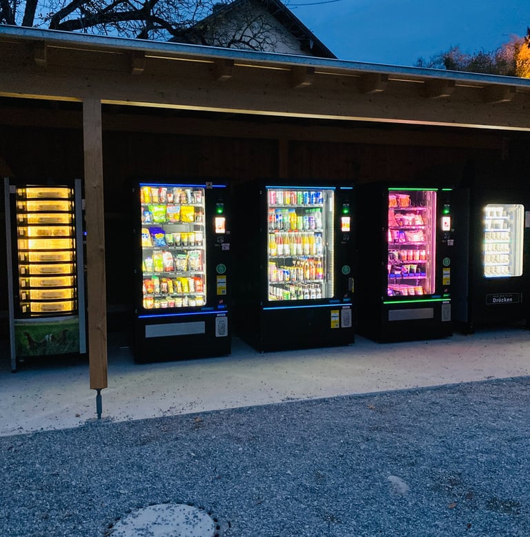 Moderne Verkaufsautomaten für frische Lebensmittel und Alltagsprodukte, jederzeit und überall verfügbar.