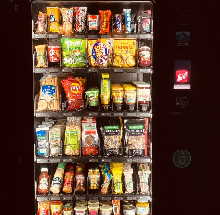 In meinen Automaten findest du eine Mischung, die zum Alltag passt: regionale Produkte, bekannte Marken – und auch mal was Süßes. Nicht alles ist bio oder „supergesund“, aber alles ist ehrlich ausgewählt.